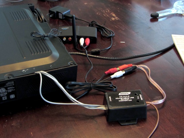 - Connect the level line converter RCA jacks to a bluetooth transmitter